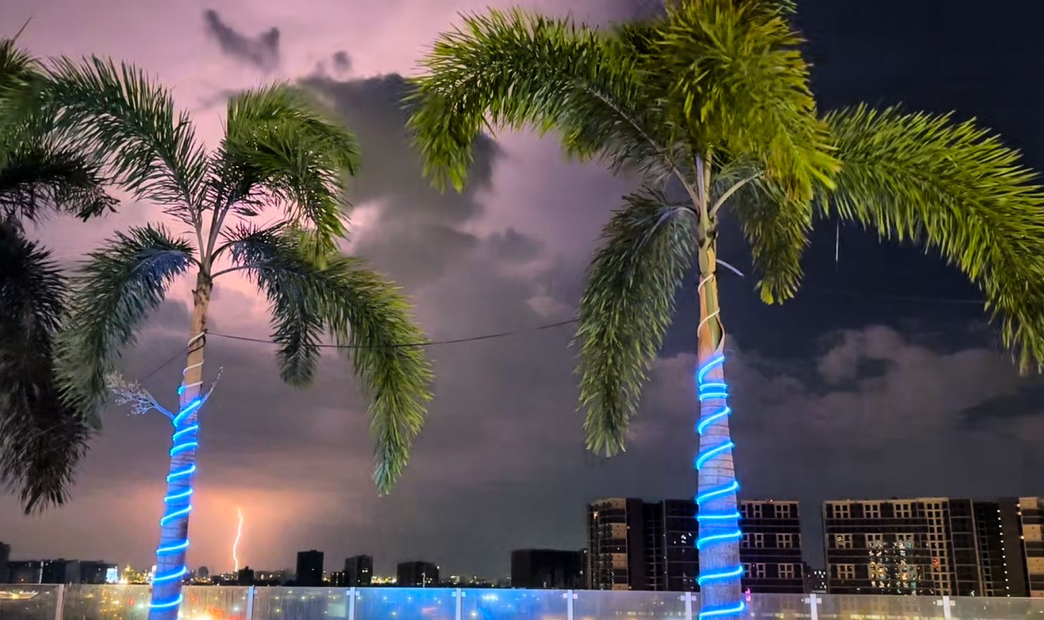 Taking in the views of a Manila lightning show from the rooftop pool and bar at Kingsford Hotel