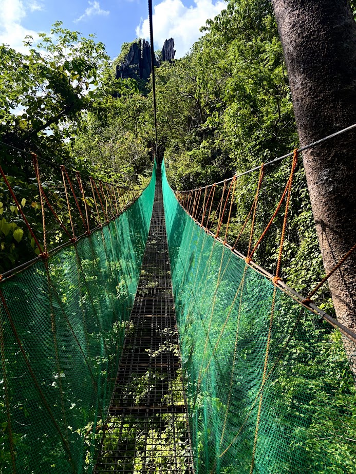 If you are an early riser and looking for a challenging tour, consider booking a guided hike/scramble up Taraw Cliff. The views at sunrise are said to be spectacular. This is definitely reported to be a challenging tour with lots of exposure, which is why a guide is required for the trip. I did not hike Taraw Cliff but instead opted to do the via ferrata/canopy tour excursion. A guide is also required for this short trek, but there is very little exposure, and you get clipped into a guide wire while crossing the suspension bridge. The most challenging part is probably the beginning of the tour where the rocks and roots have been worn smooth by so many feet eroding the path.