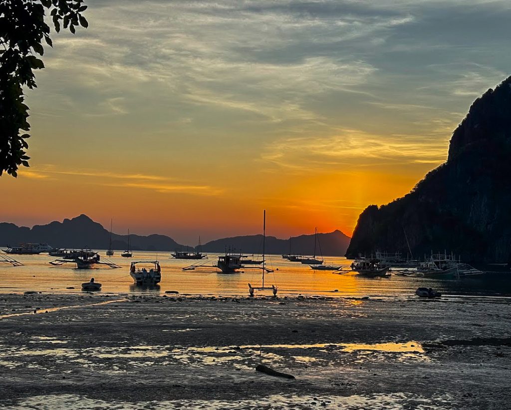 If you are looking to relax after a day of island-hopping with a cocktail and some amazing views of the waterfront, check out Piece of Sky Cocktail Bar. You can ride an elevator to the rooftop lounge that has a great happy hour and spectacular view of the waterfront. Due to the surrounding limestone cliffs, you do not get a view of the actual setting sun, but the orange glow over Cadlao Island and the waterfront is still stunning.