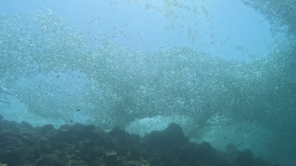 One of the main reasons I visited Moalboal was to experience the sardine run. I saw so many spectacular photos online that I was worried the actual experience would not live up to the hype. That could not be further from the truth. The sardine run was absolutely amazing, and it is so easily accessible from shore. There is a small fee to access the sardine run from shore, but it is worth paying. You can hire a guide service to take you out to the sardines, but if you are a somewhat proficient swimmer, this is not necessary at all. You will see groups of snorkelers less than 100 yards from shore giving away where some of the sardines are.