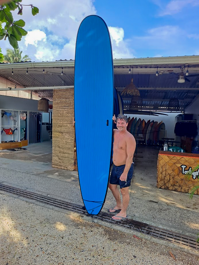 Since I had never surfed before, my guide set me up with a very forgiving 13-foot surfboard