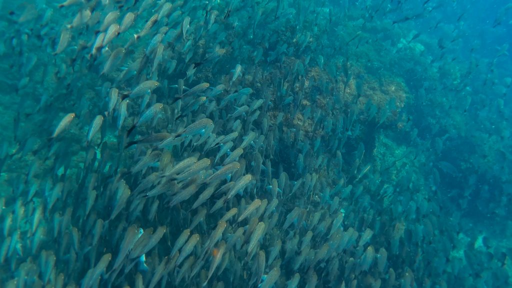 On our way to Isla Tortuga, our boat saw a sea turtle and, on the way, back, we saw a few dolphins. Depending on the time of year that you visit, whale sightings are also possible in the area. While snorkeling, you can see a lot of different sea life including large schools of fish, possibly a moray eel, sea urchins, and all sorts of corals. To make reservations for the snorkeling tour from Montezuma, click here.