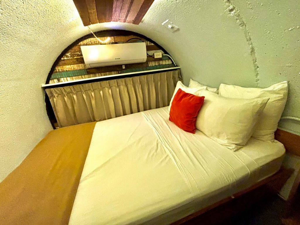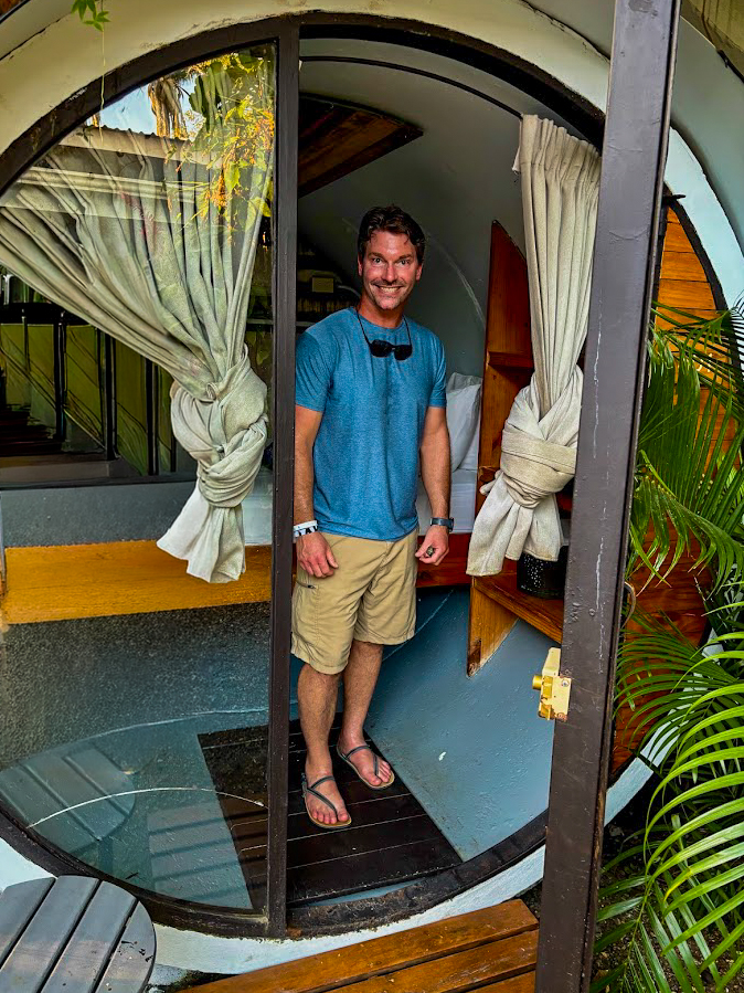 One of the big drivers for me to go to Costa Rica and Jaco, aside from surfing lessons, was to stay in a super unique hotel for a couple of nights for my 40th birthday. I wound up discovering that Socialtel Jaco had some one-of-a-kind cylinder rooms that I decided I had to check out for my birthday. I left my dad to continue his stay at Hotel Ibiza while I checked into one of the cylinder rooms at Socialtel Jaco for a few nights. This was such an enjoyable stay. The cylinder rooms are very small, so the air conditioning unit is quite ample for keeping yourself cool.