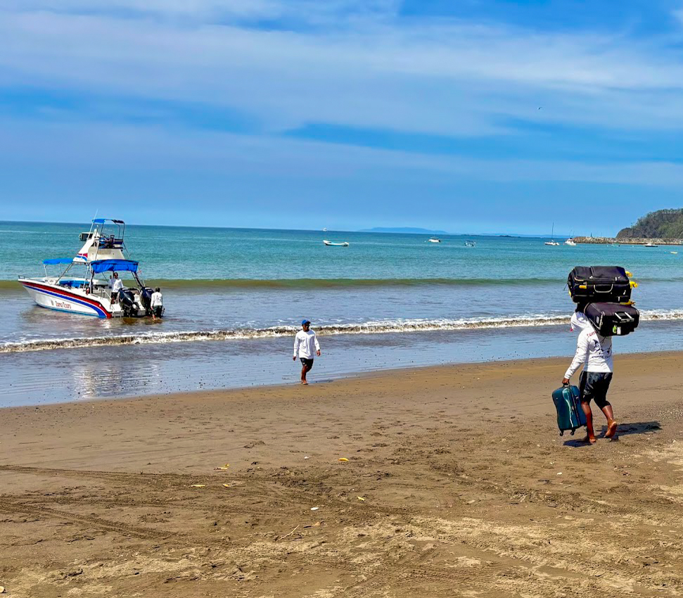 Once our visit to Jaco was over, my dad and I took a water taxi across the Gulf of Nicoya to Montezuma. The trip takes approximately one hour by sea and shaves off a ton of time if you tried to take a vehicle from Jaco to Montezuma. We booked tickets through Zuma Tours, which even included pickup from our hotel. This was especially convenient since the water taxi actually leaves from Playa Herradura north of Jaco and not actually from Jaco. One of the interesting aspects of the water taxi is that they do not pull up to a dock since there not any in the area. Instead, the boat crew hauls all of the luggage for the passengers out to the taxi and the passengers have to wade through the water to board the boat.