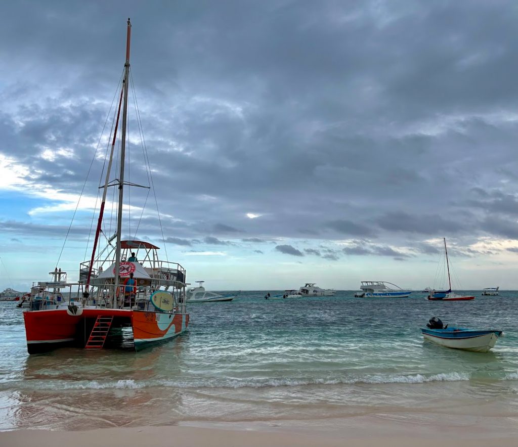 One of the really fun tours I took while in Punta Cana was a small group snorkeling cruise. The cruise is capped at a maximum of 27 guests, so you are not crammed onto a boat like some of the other party boat tours in the area. On the day that I went, the weather was overcast and rainy, so the snorkeling was not all that great, but the cruise was still so much fun. This tour has a 4.9-star rating out of nearly 700 reviews on Tripadvisor, and for good reason. The guides are an absolute blast, they play super fun music, and the bartender makes the best margaritas you will probably find in the Dominican Republic.