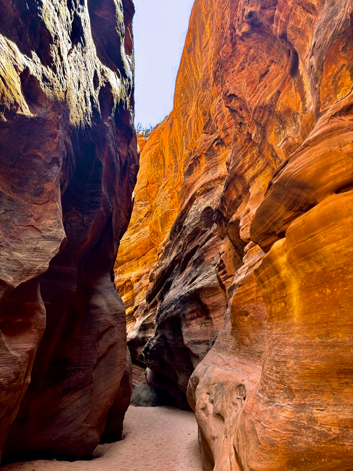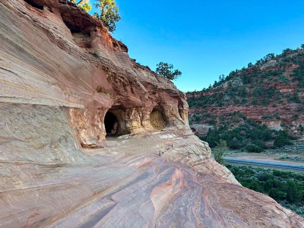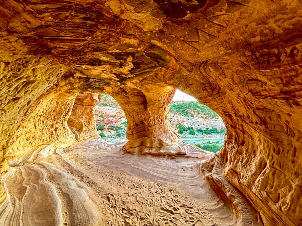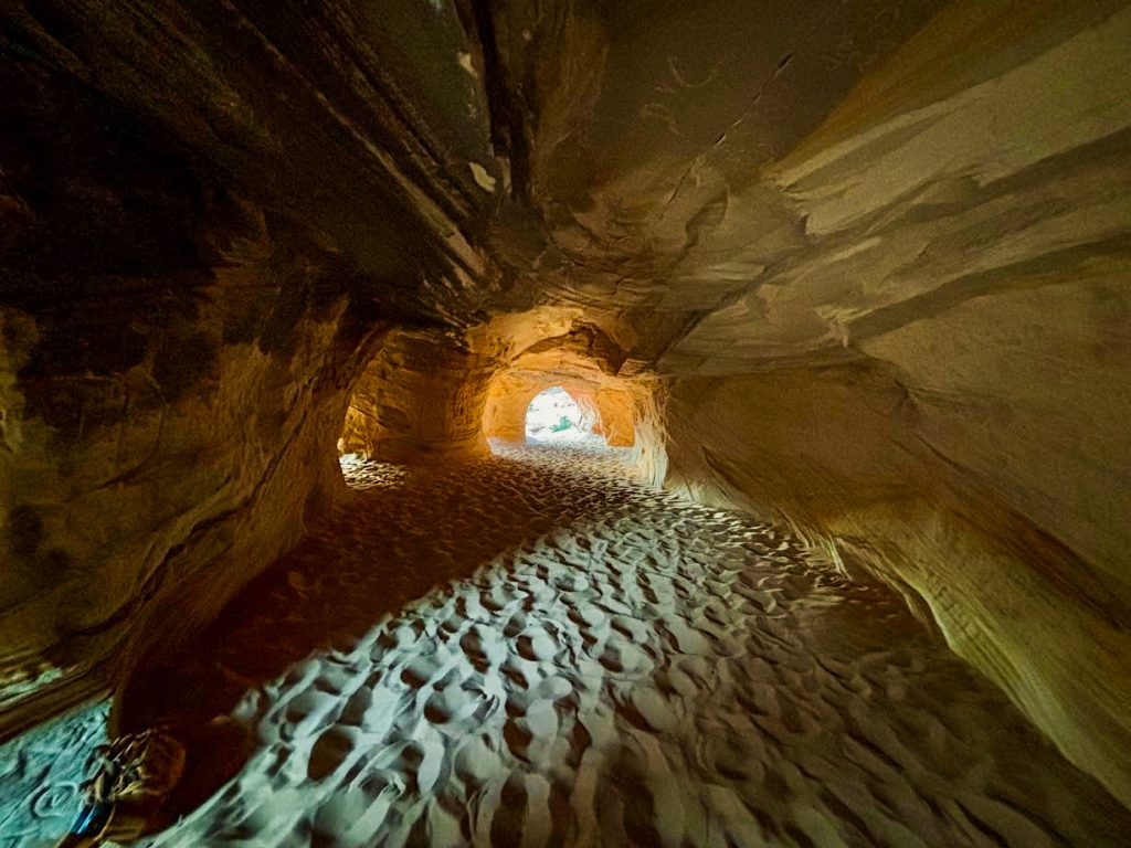 A very neat site to visit that is just a short drive from Kanab is the sand caves. These are manmade caves that were created when the area was mined for sand. The remaining caves are very picturesque and absolutely worth visiting if you are in Kanab. Do note that there is a fairly steep scramble up a sandstone slope to get up to the caves, so they might not be appropriate for those that do not trust their footing or who are afraid of scrambling up a steep rock face. If you do not have these limitations or fears, you should absolutely visit this site and spend some time exploring within the caves. Bring a flashlight or headlamp because the deeper reaches of the caves are very dark.