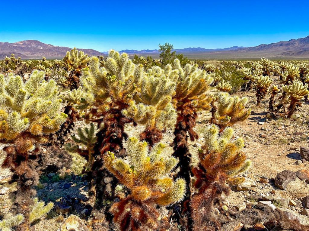 One of the sites you should absolutely visit in Joshua Tree National Park is the Cholla Cactus Garden. This area is slightly faster to access from the southern entrance to the park. In this area, you can take a 0.25-mile hike that goes past thousands of beautiful teddy bear cholla cacti. The many spines on these cacti almost give them the appearance of being fuzzy especially as the sunlight catches in their spines. If you visit when the cacti are blooming, be mindful that they do attract bees. This is the only place I think I have ever visited that had a bee warning sign along the trail. Sunrise and sunset are supposed to be spectacular times to visit the Cholla Cactus Garden. This short hike should be on your itinerary for your visit to Joshua Tree.