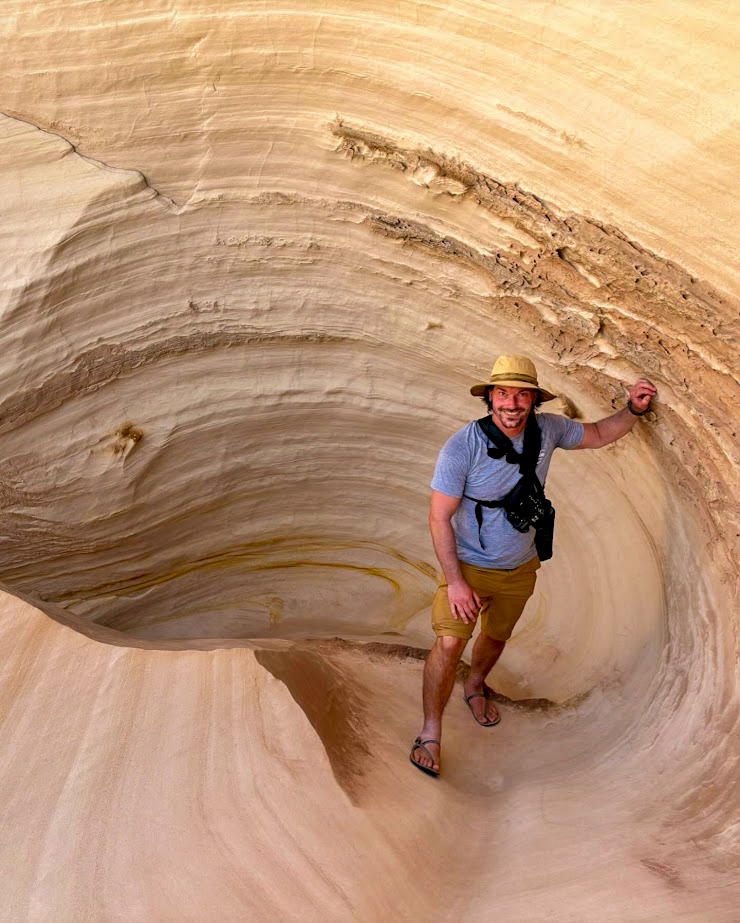 If you are unable to secure tickets to hike the more popular “Wave” trailhead in the area, the Nautilus Trailhead is a pretty neat alternative. This formation is also referred to as the White Wave since it is white in color but has the same wavy stratigraphy as the more popular Wave rock formation. This is also a fairly short one mile or so roundtrip hike, so you can also fit this into a day trip between Page and Kanab. The Nautilus is a neat formation where water has eroded a spiral shaped cutout through sandstone. This makes for some unique photographs and a very cool hike in this area. If you are traveling in this area, I would definitely recommend making the stop off to experience the Nautilus rock formation.