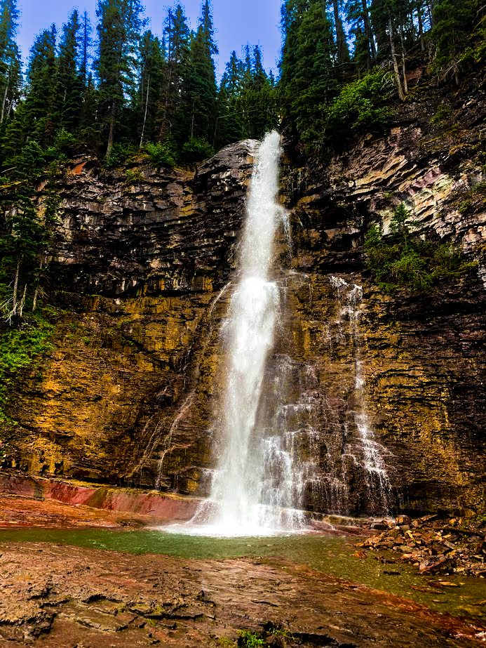 The hike to Virginia Falls is around four miles roundtrip from the St. Mary Falls Trailhead and offers beautiful scenery and mini waterfalls along much of the hike. You will finally end up at Virginia Falls, which is a 50+ foot high waterfall. This waterfall is well worth the hike, and you should definitely hike beyond St. Mary Falls to visit this site.