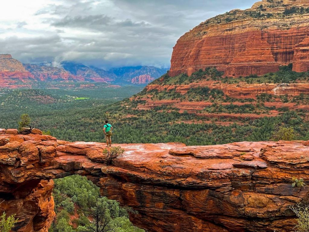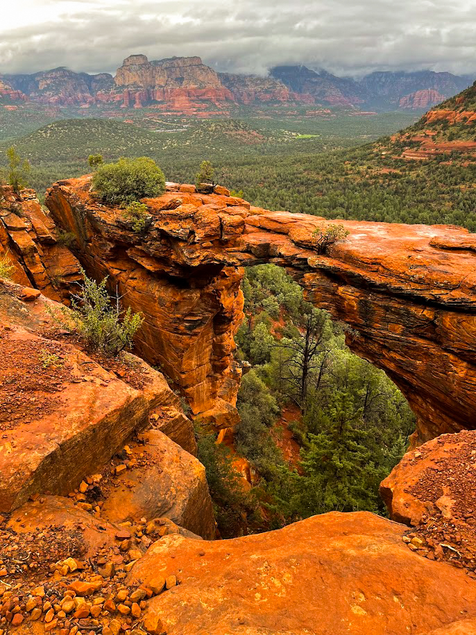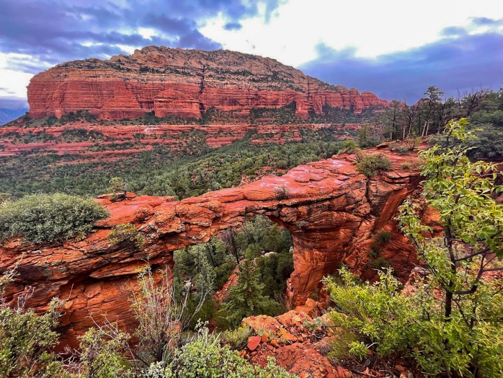 This is one of the most photographed areas in Sedona, so be prepared for large crowds. It can take a long time to walk out on top of the bridge and have your photo taken. When I visited, it had been raining most of the day, so there were no crowds, but I know people who waited for nearly an hour to walk out onto the bridge and have their photo taken. If you visit this site, arrive early or hope for a rainy day to keep the crowds at bay. Keep your eyes peeled for wildlife along the way as well. I saw a group of javelina walking through the surrounding shrubbery on my way back to the trailhead.