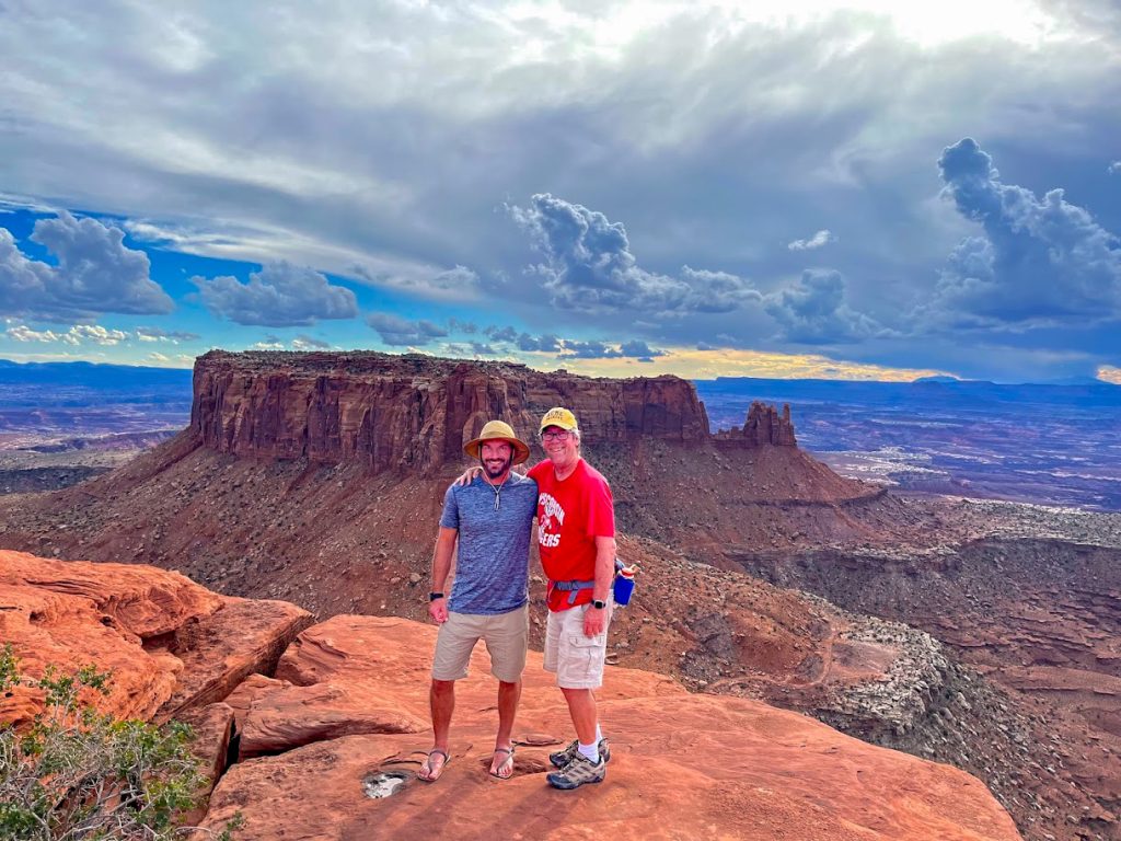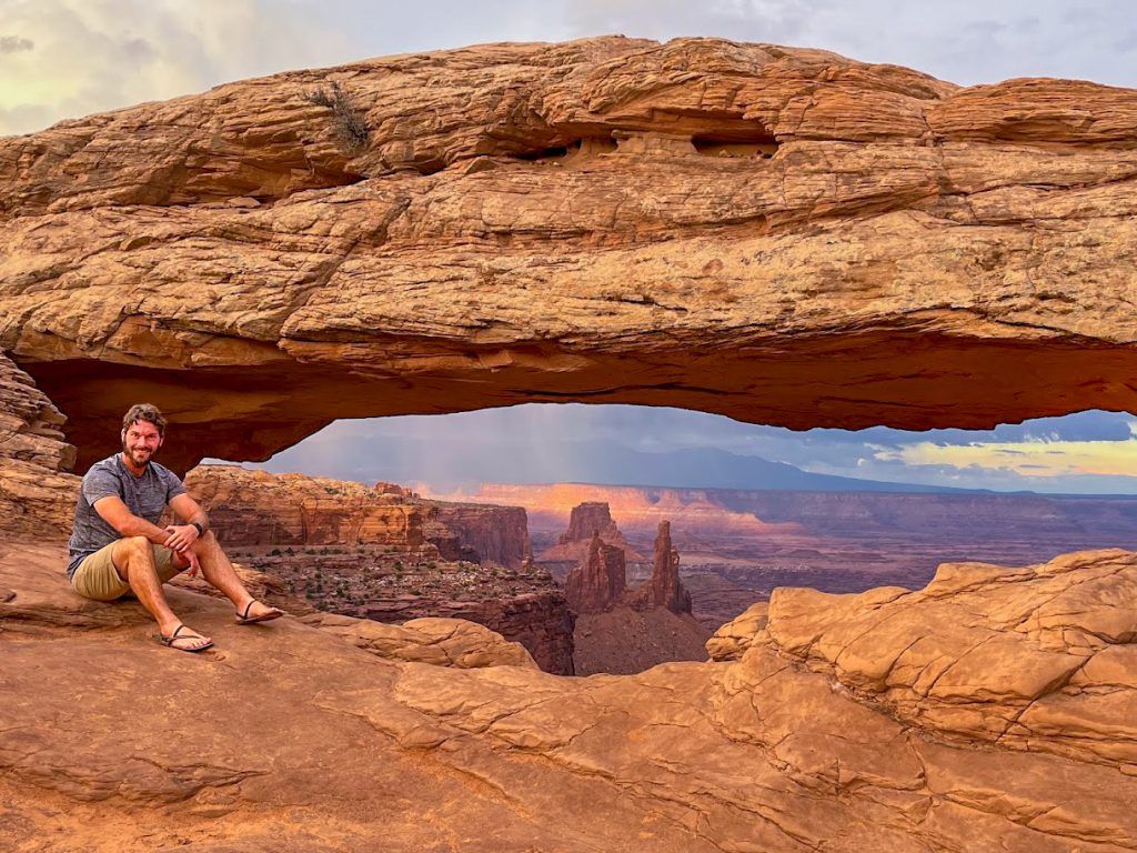 Mesa Arch is probably the most photographed site in Canyonlands National Park. It is also probably one of the most photographed sites in all of Utah. That means you can expect large crowds during peak hours for this site. This is generally around sunrise as numerous photographers and content creators attempt to capture the sun illuminating the underside of the arch. When my dad and I visited, we managed to get extremely lucky with Mesa Arch. Just prior to us hiking to the arch, a massive lighting storm rolled through the area and caused a lot of visitors to leave the park. That meant when we got to Mesa Arch, there were only six other people there and they all departed shortly after we arrived.