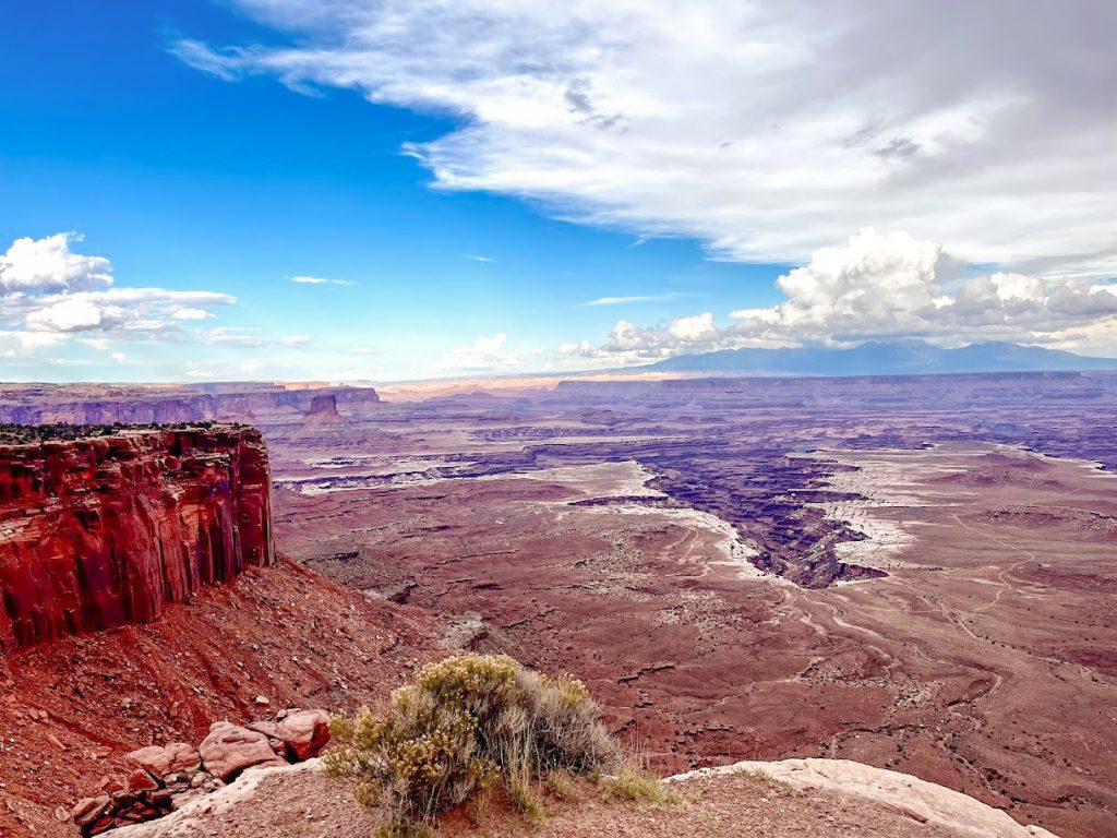 Since there was a thunderstorm approaching when I visited, I stopped at Buck Canyon Overlook instead of hiking White Rim Overlook. The walkway to this overlook is paved and wheelchair accessible. You also get stunning views to the east. You can see the La Sal Mountains as well as sprawling canyons. If you want some more beautiful views of the canyons but are tired of hiking, the Buck Canyon Overlook is definitely worth the stop.
