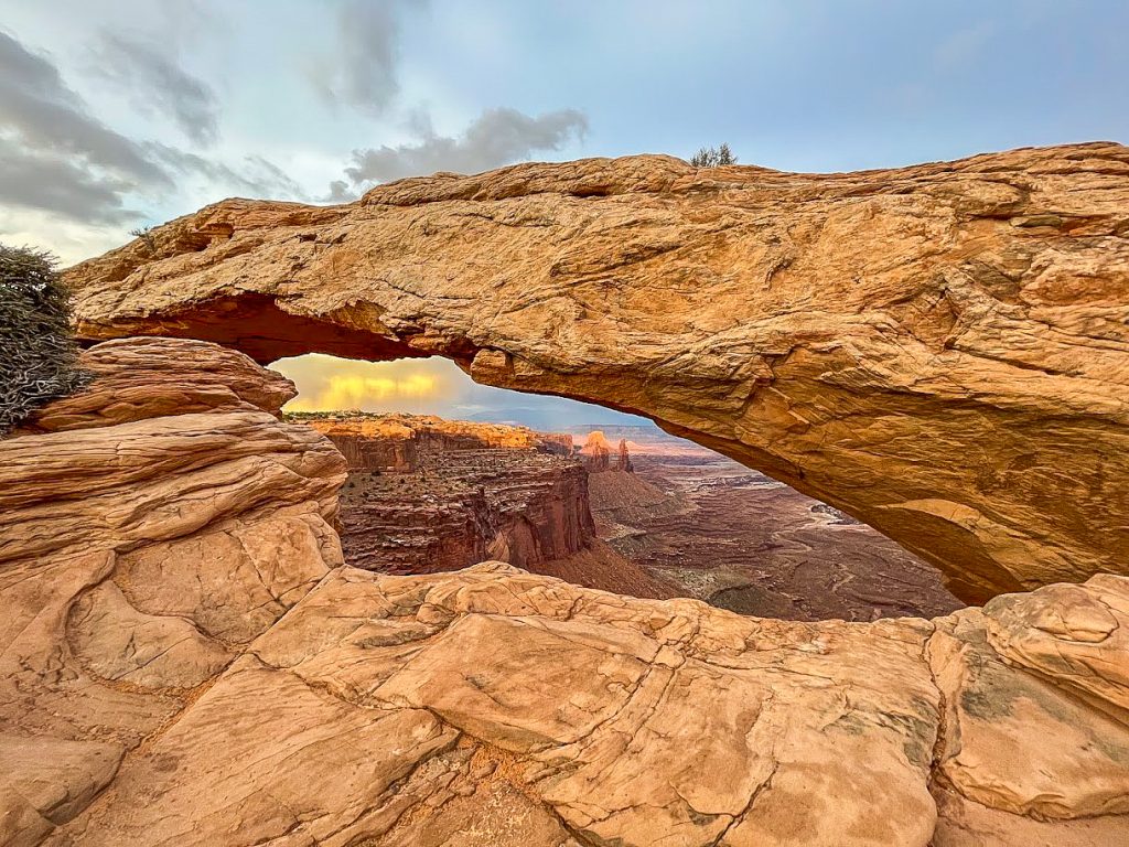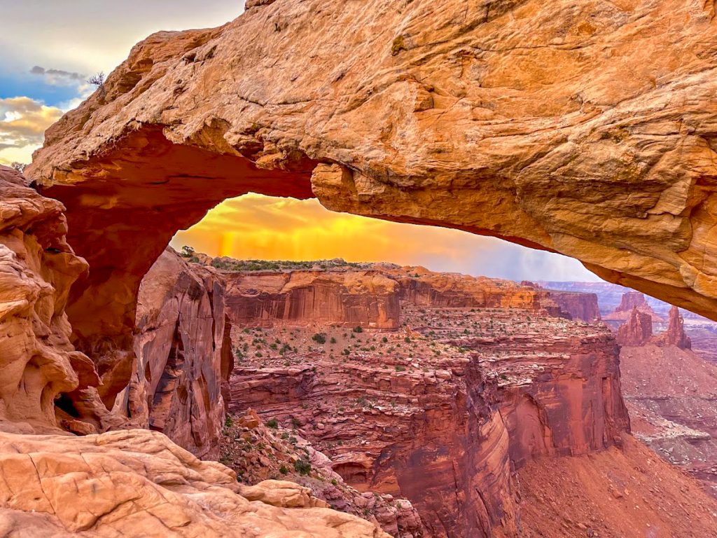 We managed to have Mesa Arch all to ourselves for quite a while. I was able to take some amazing photos and even snapped some photos of a rainbow through the arch. I feel like that was a once in a lifetime experience that we got lucky enough to stumble into. The moral of the story is that if the arch is too crowded at sunrise, you should hope for a massive lighting storm that clears up quickly and gives you sole access to the most photographed site in the park. Sometimes weather and timing manage to work in your favor to make up for the thousand other times that weather did you dirty.